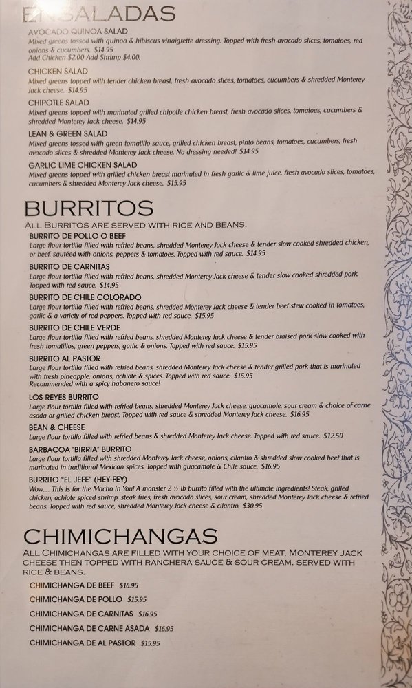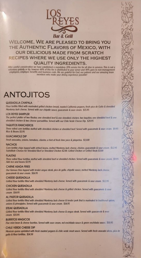 Los Reyes Bar and Grill Menu